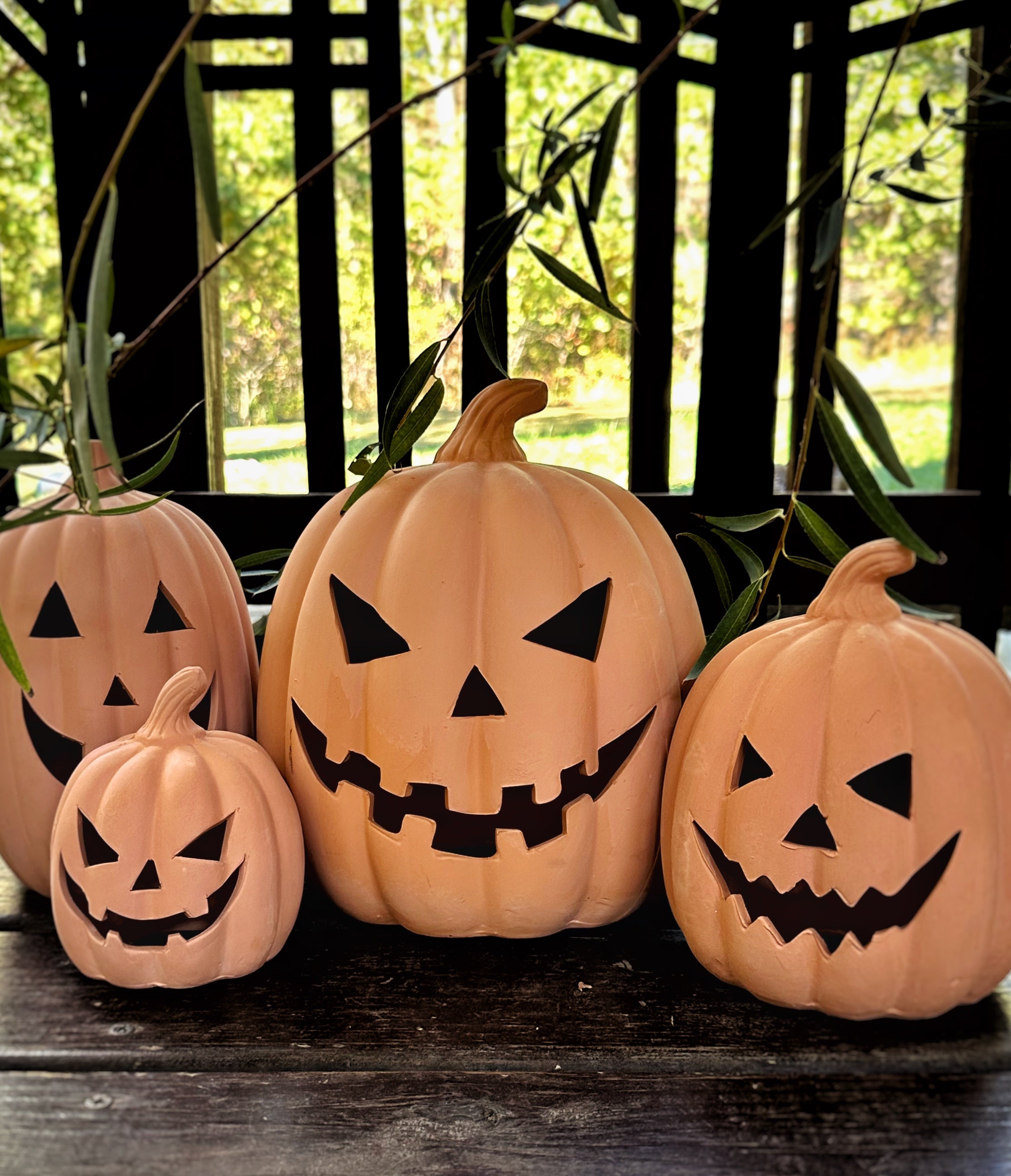 Carved from terracotta, this jack-o'-lantern combines a traditional Halloween festivity with rustic autumn charm. Illuminate the warm, earthy tones of the natural clay and embrace the spirit of the season by adding a candle or fairy lights inside to create a cozy, spooky glow.